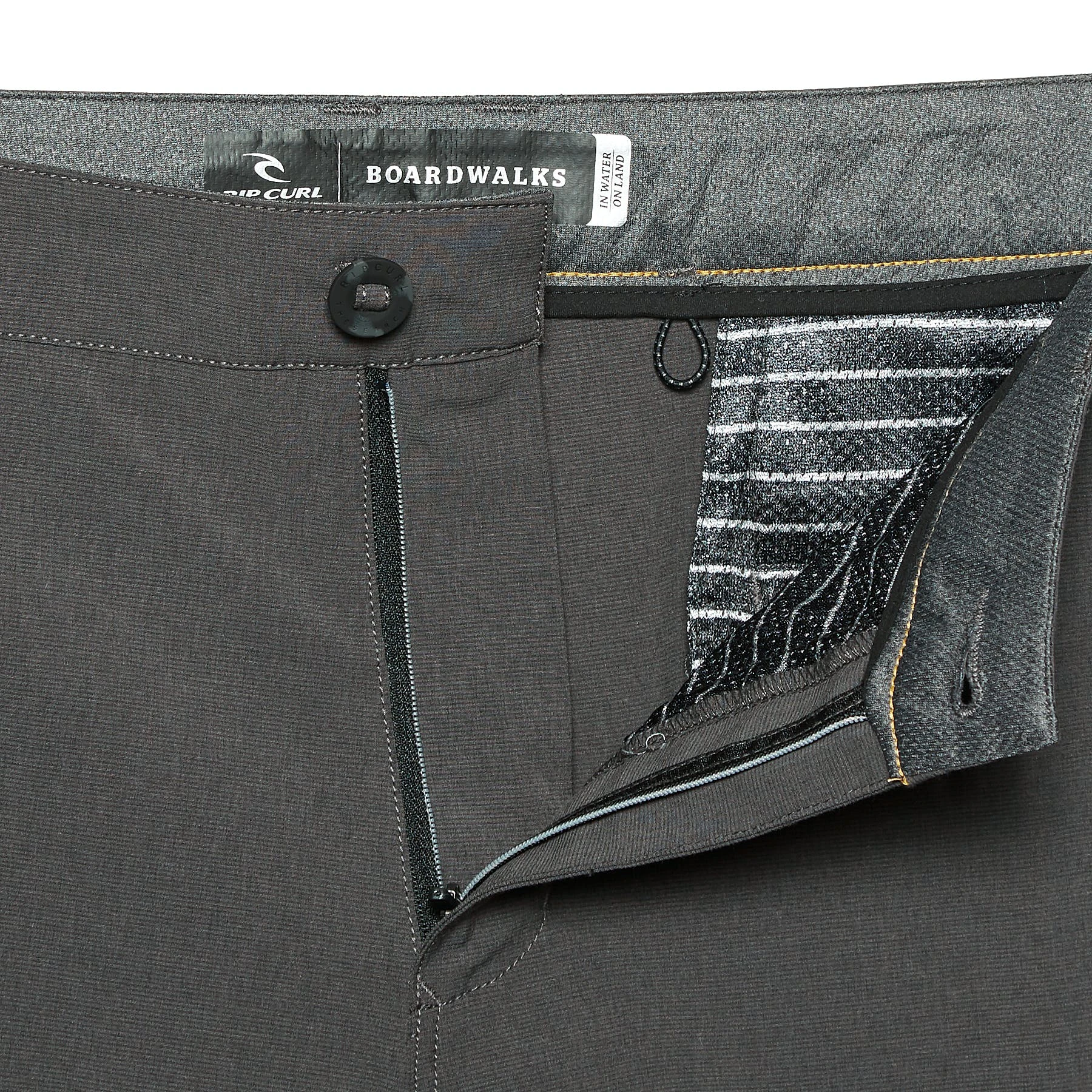 - Rip Curl branding on the lower left leg and above the back pocket