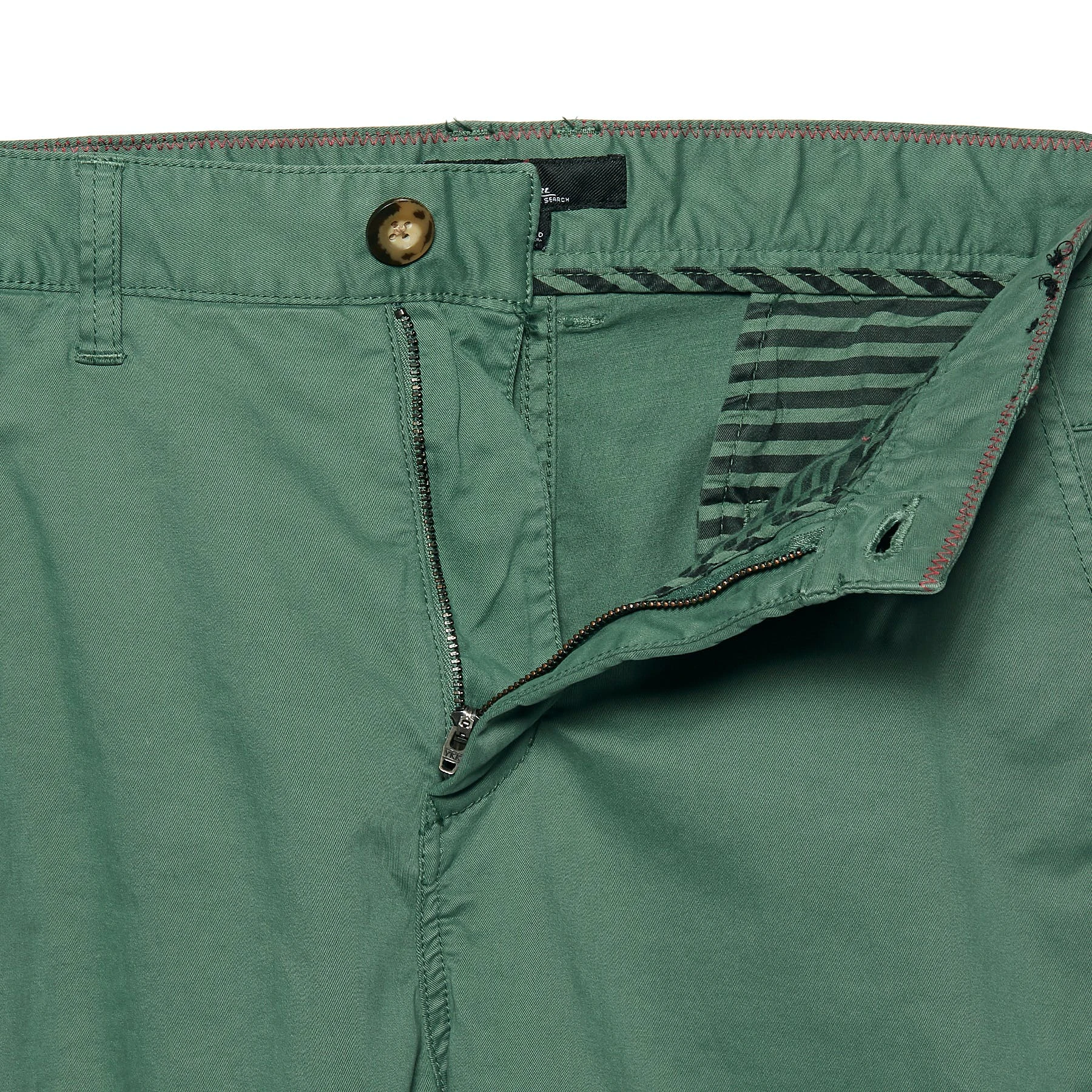 - Two welted back pockets featuring a button closure on the left hand side